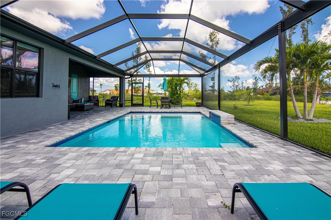 Welcome to Blue Heaven, your perfect vacation spot in sunny Cape Coral Florida. This spacious property is the perfect place to relax by the Heated pool and soak in the sunshine or enjoy the indoor life of modern luxury. With four bedrooms and 2 bathrooms, this open living space with a magnificent granite, center island, is a prime gathering spot to enjoy meals and memories together. Step outside to the screened lanai where you can enjoy the amazing weather without the bugs by the crystal-clear pool. We look forward to hosting you at Blue Heaven.