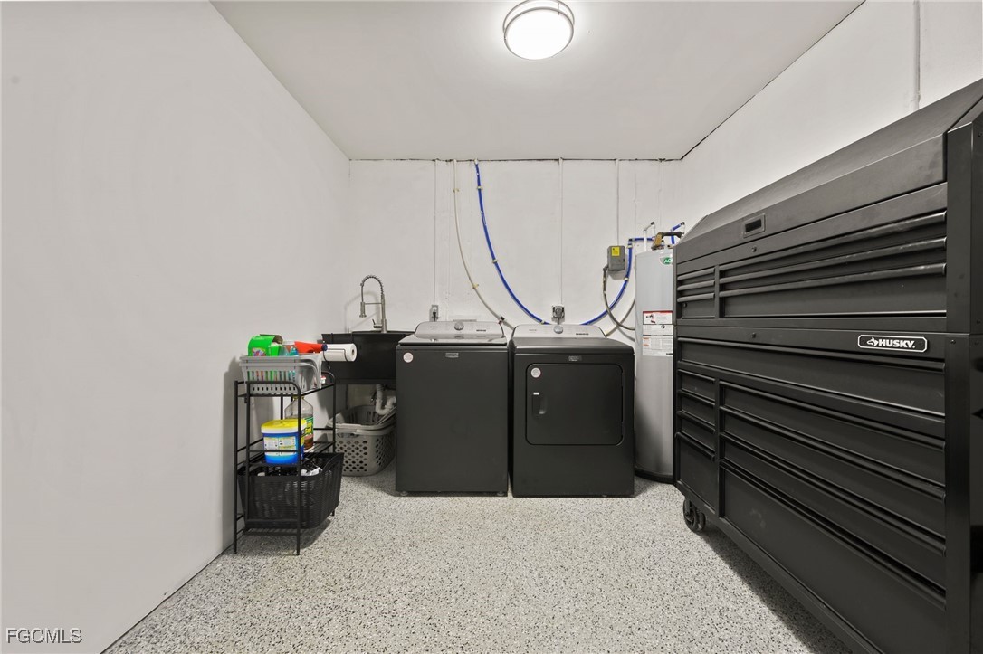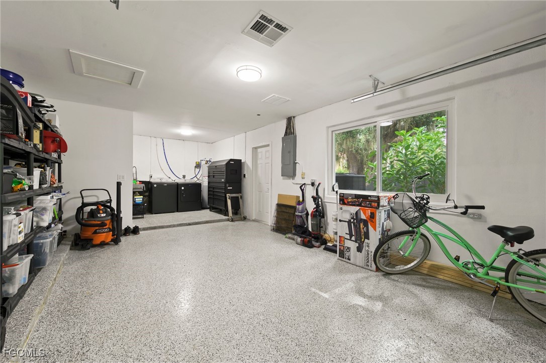 Epoxy-coated garage floor, insulated garage door, and utility sink in the garage.