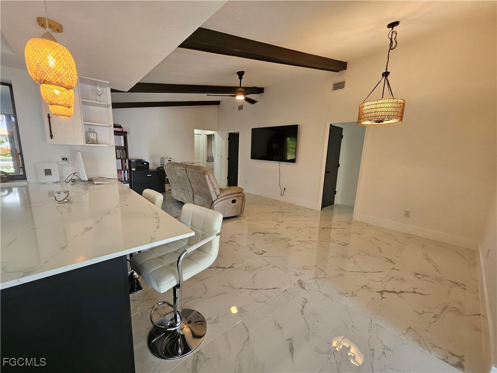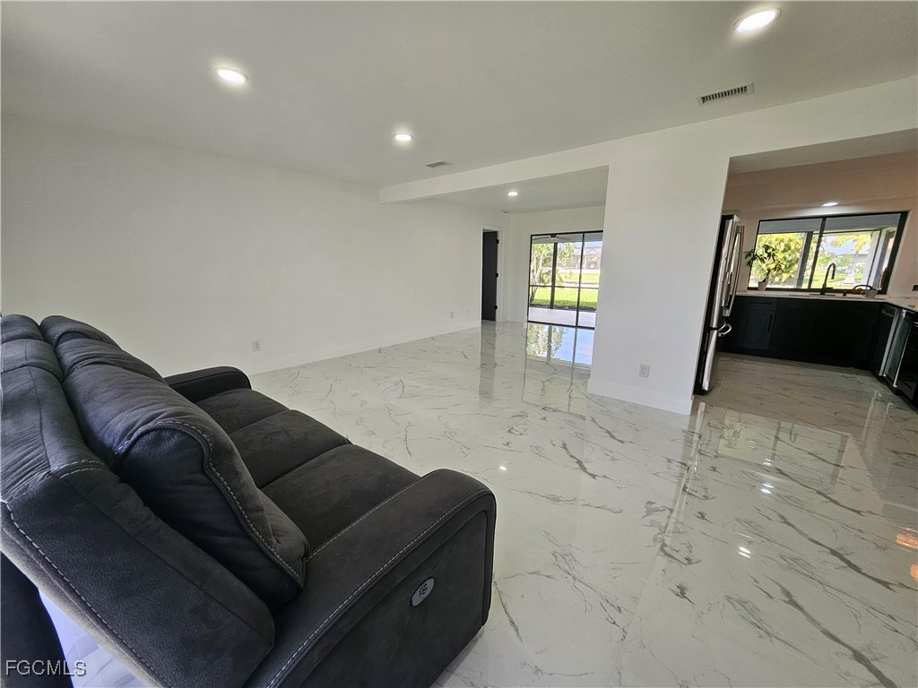 Elegant Waterfront Retreat in Desirable Cape Coral! Earn instant equity as this home is priced under value for a quick sale. Discover the perfect blend of modern luxury and waterfront living in this beautifully remodeled Cape Coral home. Situated on a hard to find freshwater canal with a private concrete boat dock and seawall on flood zone X which means flood insurance is not required by any lender. You can fish from your own backyard or dock your boat or jet ski just steps from your lanai. The canal connects to seven scenic lakes, offering endless recreation—all with no HOA. This stunning residence boasts a brand-new roof and a 4-ton air conditioning system, ensuring comfort and peace of mind for years to come. Inside, you’ll find large-format porcelain tile throughout, a designer kitchen with quartz countertops, soft-close cabinetry, and premium stainless steel appliances including wine cooler. Both bathrooms are fully updated with modern finishes, while new plumbing fixtures, light fixtures, door hardware, baseboards, and casings add to the home’s refined style. The expansive 550+ sq. ft. under-truss lanai creates the perfect outdoor retreat and has the potential to be converted into additional living space, enhancing the home’s value. The garage features an epoxy-coated floor, EV charging outlet, and a new motor with remote access. The boat dock is fully equipped with power, lighting, and water hookup, making it ideal for avid boaters and outdoor enthusiasts. Beautifully landscaped and nestled in a quiet cul-de-sac, this property offers both serenity and convenience—close to shopping, dining, entertainment, and points of interest, yet tucked away in a low-traffic location. A well pump system also provides additional water supply for irrigation. This is more than a home—it’s a lifestyle. Move-in ready, modern, and ideally located, this Cape Coral gem is waiting for its new owner.