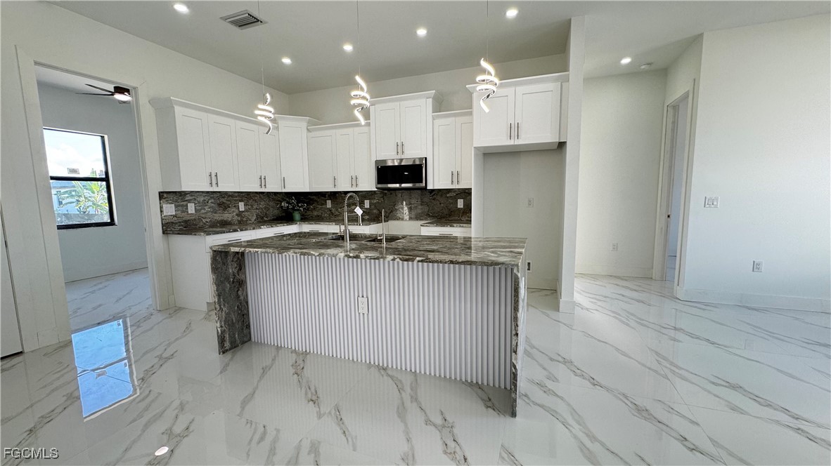 Beautiful new construction located in 33976. This home offers 3 bedrooms + Den and 2.5 baths, featuring a stylish kitchen with white cabinets and granite countertops. The home boasts beautiful flooring throughout, with fully tiled showers in every bathroom. Enjoy outdoor living on the lovely terrace, and park on the brick driveway. Ready to move in and make it your own.