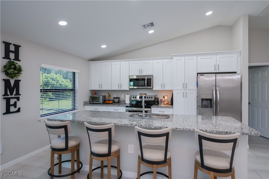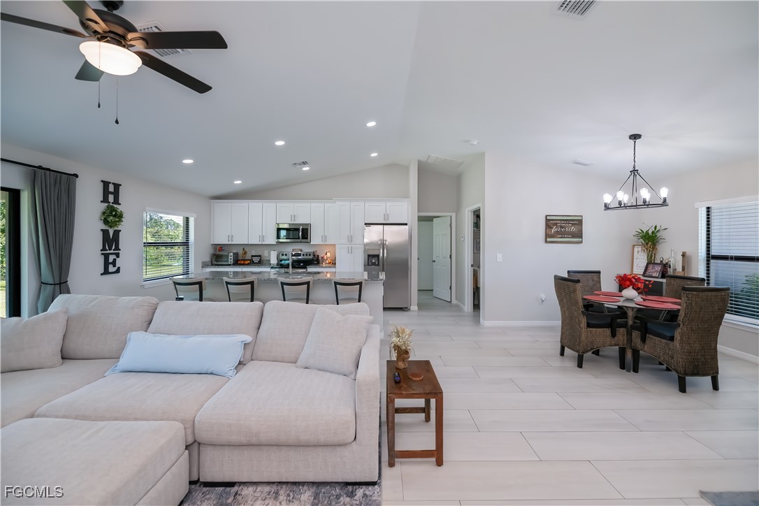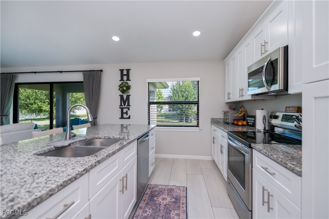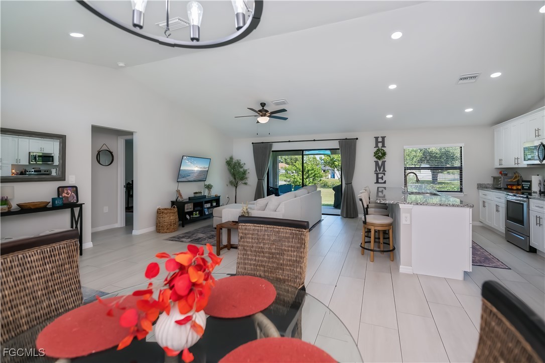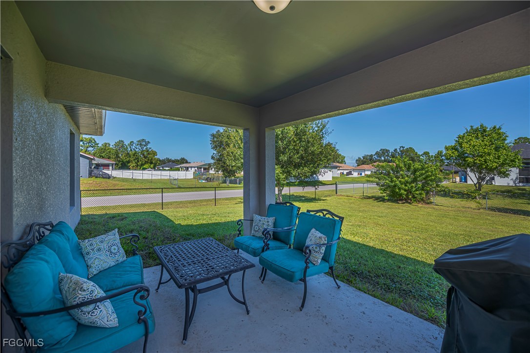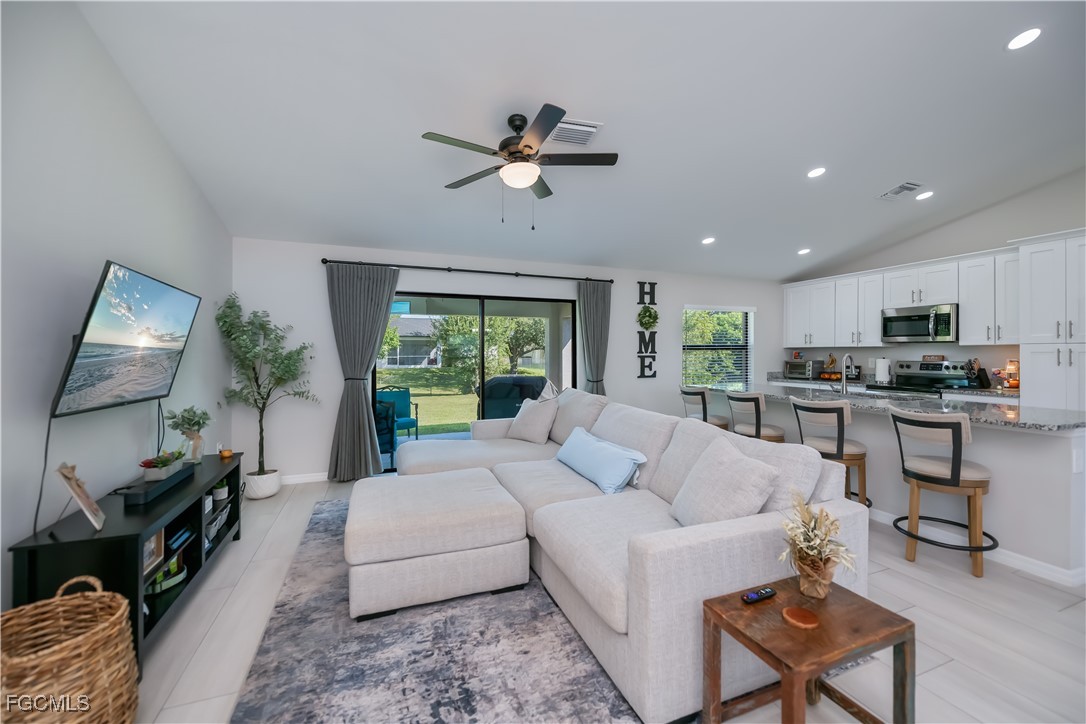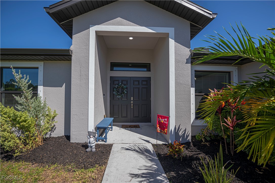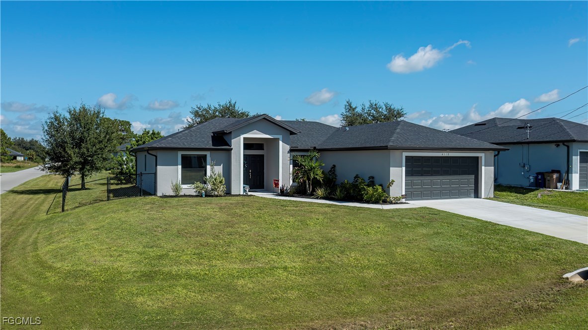 Built in 2023, this beautifully designed 3-bedroom, 2-bath home offers modern living on an oversized FULLY FENCED, CORNER lot!! Step inside to appreciate the meticulously maintained open layout featuring granite countertops, vaulted ceilings, wood-look tile flooring throughout and custom window treatments that accentuate the abundance of natural light. The primary suite has a walk-in shower, dual sinks, private lavatory and walk-in closet. Outside there is a large under-truss lanai to enjoy the spacious fenced yard. NO FLOOD INSURANCE being required and hurricane shutters give peace of mind, while the convenient location allows the owners to enjoy close shopping and restaurants! Convenient to the airport, beaches, shopping and so much more!! Schedule your private showing to truly appreciate all this home has to offer.
