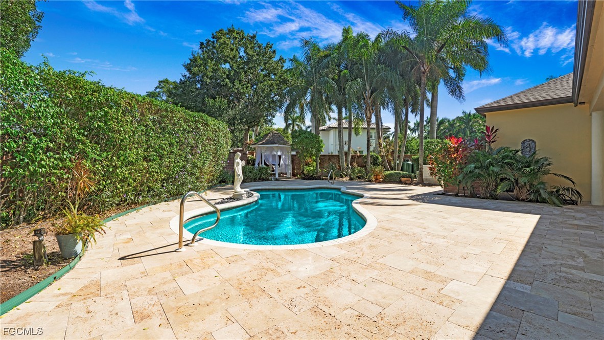 The backyard is a private retreat, featuring a sparkling pool, inviting gazebo, expansive covered patio perfect for entertaining, and a fully equipped outdoor kitchen. The lush, tropical landscaping and mature trees create a serene oasis with complete privacy from neighboring homes. The home features an incredible media and game room perfect for entertaining.