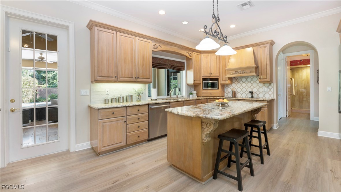 And for piece of mind the home features hurricane-rated windows in the front of the home, newer A/C units, and a whole-house generator with propane tanks.