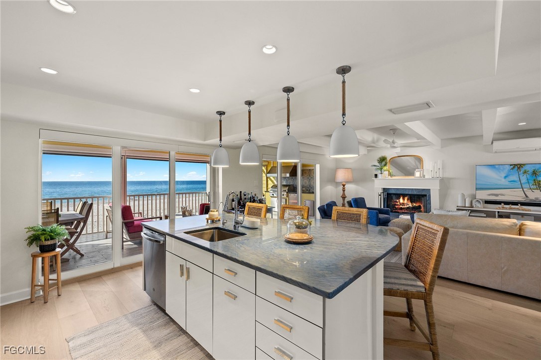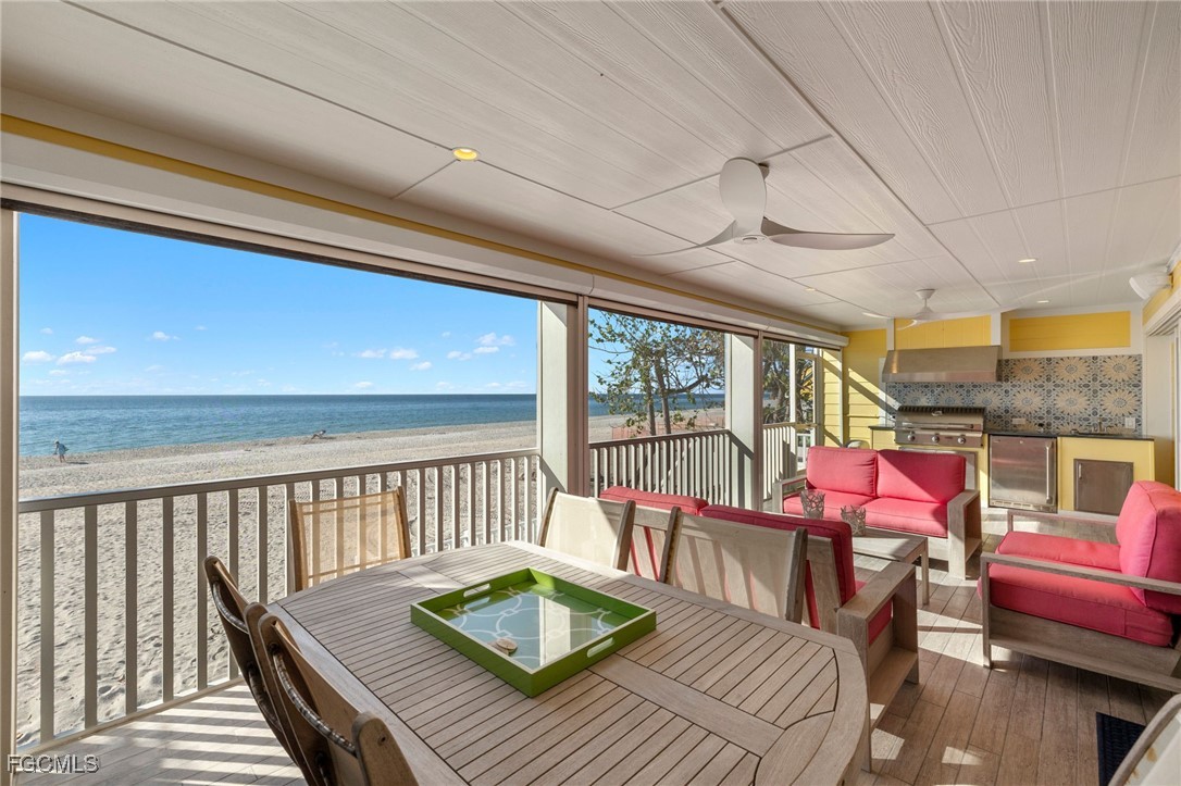 At the quaint end of Captiva's unofficial main street, this beautifully remodeled beachfront property offers a blend of serene coastal living and vibrant island charm. Ideally near the heart of Captiva, this home places you at the center of it all, while offering privacy and stunning water views that define the island lifestyle. Whether from your lanai, living room, or dining area, you'll be treated to stunning sunsets over the Gulf, a daily spectacle that never gets old. Inside, the open-concept kitchen is ideal for entertaining, while the inviting fireplace creates a cozy ambiance for those cooler island evenings. The expansive outdoor area features screened and open lanais, providing spaces for sunbathing, dining or simply relaxing. A fully-equipped grilling station sets the stage for memorable alfresco meals with family and friends. Just a short stroll from your front door, you’ll find an array of charming shops, local restaurants, bars and entertainment, making this an ideal location for those who want to experience the essence of island life. The community offers amazing amenities including a large pool, tennis courts and a boat dock on the bayside. This property is the escape for anyone seeking a low maintenance, yet luxurious lifestyle in one of the sought-after locations on Captiva. With its incredible walkability, modern upgrades and tranquil outdoor spaces, this home offers the best of both worlds, peacefulness of beach life combined with the excitement of Captiva's island offerings. Embrace your island dream here, where sunsets are always spectacular and every day feels like a vacation.