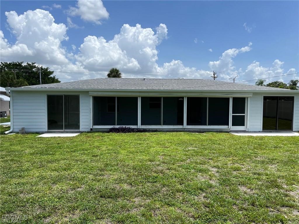 Many new updates and Flood Barriers! This friendly non gated community is a short distance to the Cape Coral Yacht Club which features a public beach, fishing pier, tennis courts, racquet ball, community swimming pools and a great waterfront restaurant! This home open floorplan with all new, AC & Ducts, Kitchen, Bathroom, Beautiful ceramic tile, Insulated windows. Plumbing, Electrical panel, Doors & Trim, Soffit and Gutters all the way around, LED lighting, Amazing Granit work. Bonus room and beautiful laundry room addition.