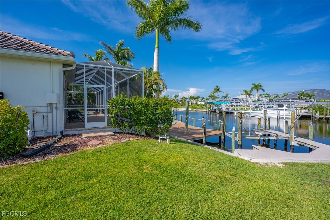 DON'T MISS OUT! Stunning 3 bedroom + den, 2.5 bath GULF ACCESS, POOL HOME available for ANNUAL rental as of 12/1/2025. You will find this gem in the highly desirable NW part of Cape Coral. This house features exactly what you need in every way. On the water with boat dock, Beautiful pool and extended screened in lanai for entertaining guest. This home has all the bells and whistles including a full kitchen, 3 spacious bedrooms, 2 indoor bathrooms and a pool bathroom with outdoor shower. It has a large laundry room with washer and dryer, and nice office with large French doors. This home is located in a new up and coming part of Cape Coral and in close distance to all your needs. THIS IS A FURNISHED HOME.