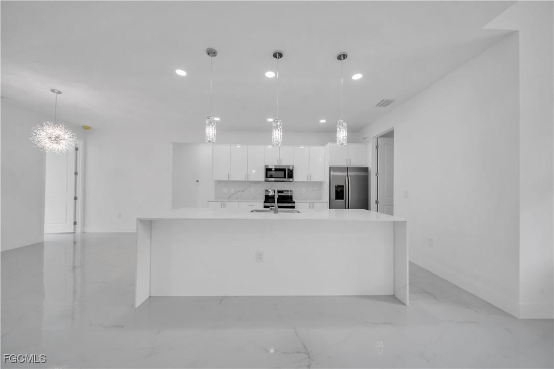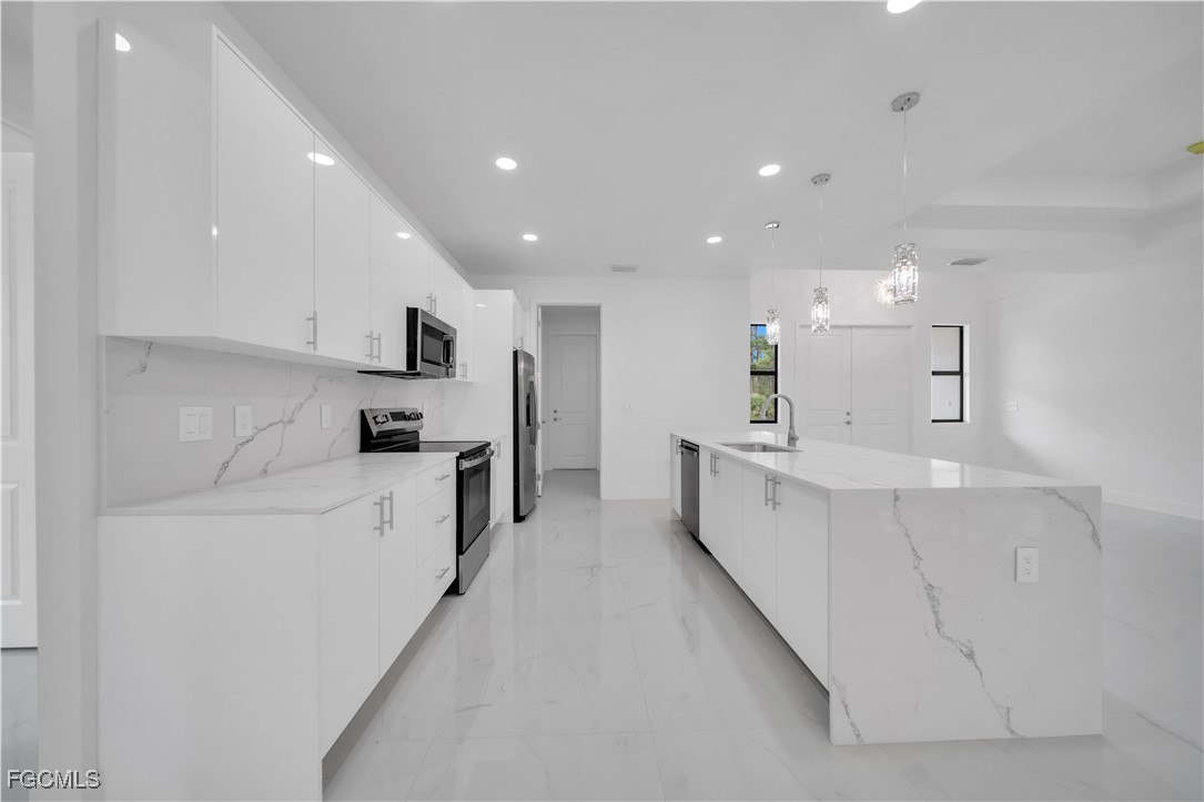 Spectacular New Casariego Development 4 bed/3 bath with 2 car garage & an oversized driveway. Located in a prime location of LEHIGH ACRES! This Open concept home features high ceilings, 8FT interior doors, Impact-resistant doors and windows, porcelain flooring throughout. The gourmet kitchen features a quartz two-waterfall island, stainless steel appliances, and custom made cabinets. The master suite boasts walk-in closets and a spa-like bath with a glass-enclosed shower and dual quartz vanities.