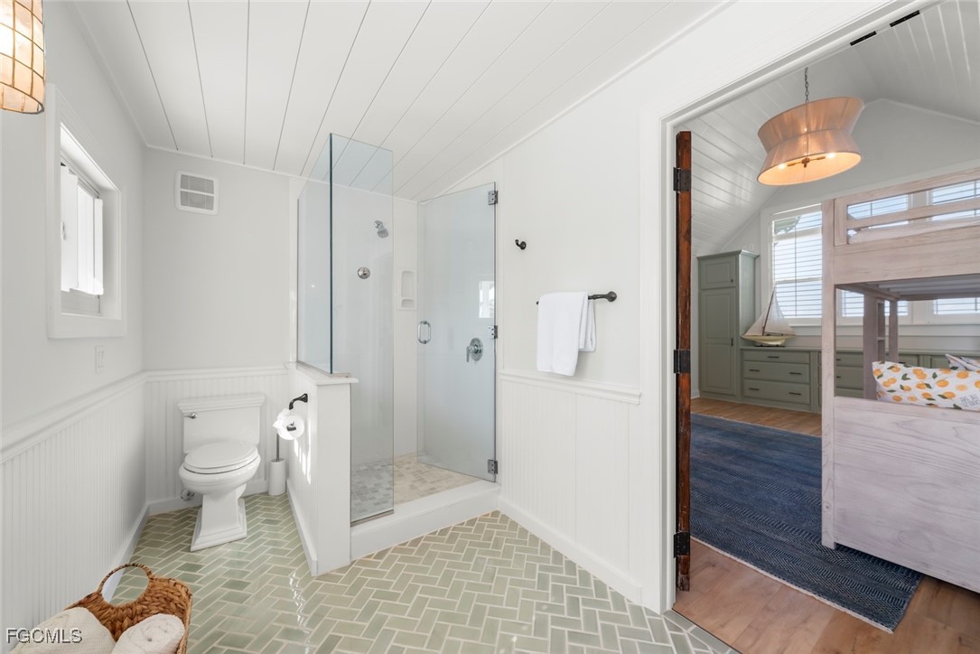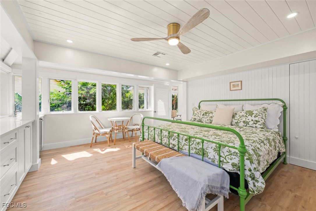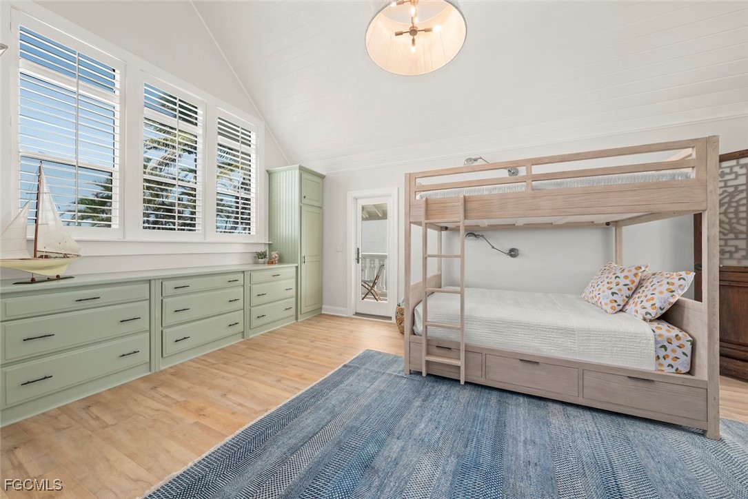 The main residence is light-filled and expansive, showcasing panoramic bayfront vistas, soaring vaulted ceilings, and impact-rated windows and doors that frame the natural beauty of the surroundings. The floor plan features three spacious bedrooms, four full baths, and a powder room, designed for both everyday comfort and elegant entertaining. The gourmet kitchen is a true centerpiece, complete with top-of-the-line appliances, waterfall quartz countertops, custom wood cabinetry, designer lighting, and a paneled refrigerator. A stylish wet bar with refrigerator drawers, ice maker, and custom shelving enhances the home’s effortless flow for hosting.