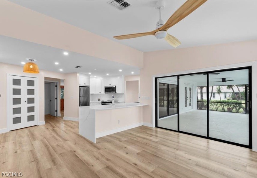 Inside, you’ll find both a formal living room and a generous family room, providing flexible space for everyday living. The updated kitchen serves as the heart of the home, featuring quartz waterfall island, modern finishes, and bright, airy tones that reflect the Florida lifestyle.