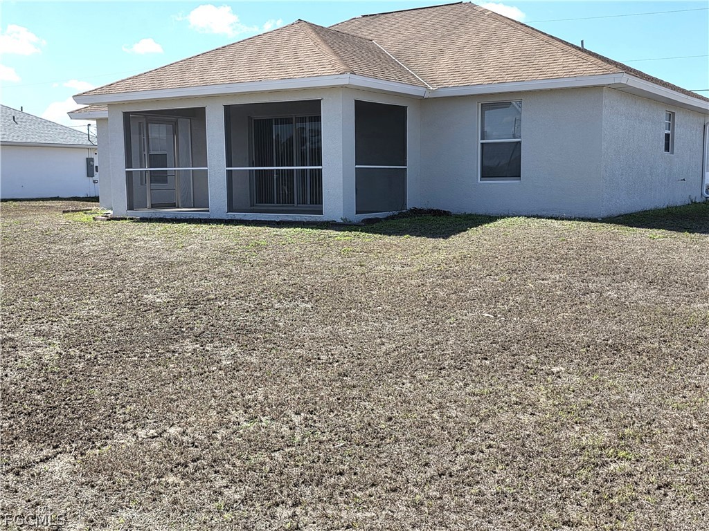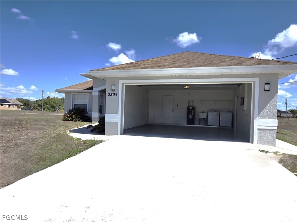 Residential Single family home, 3 bedroom, 2 bath, 2 car garage, an spacious open-concept floor plan, Master bedroom with His and Her closet. Tile throughout the house, the kitchen with breakfast bar, Freshly painted, The laundry in the garage, the garage with floors with epoxy, Open front porch, screened lanai to the the backyard, in Lehigh Acres FL.